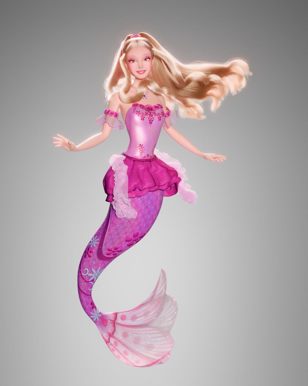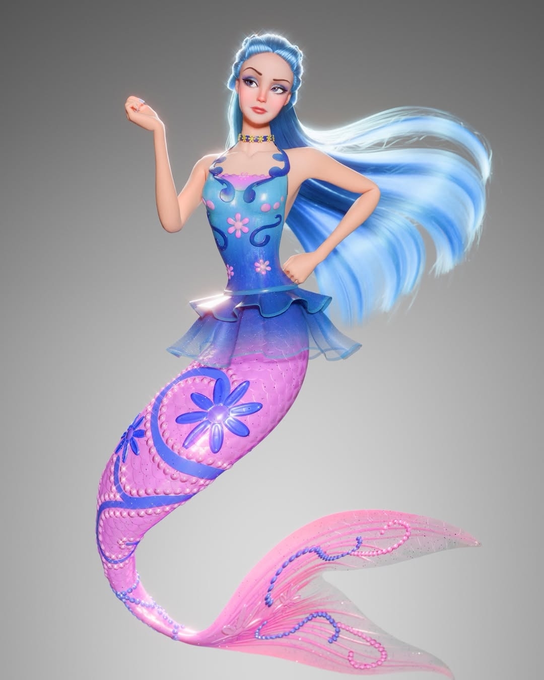 Talented artist PleumSchool created a beautiful and unusual 3D reinterpretation of Barbie Mermaidia. Elegant poses, flowing hair, and richly detailed mermaid tails give these designs a fresh, modern look while staying true to the magical Mermaidia aesthetic.