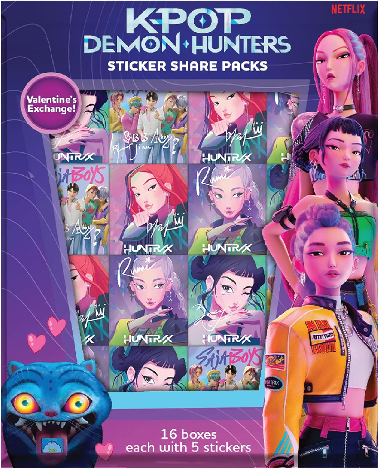 This ready-to-share set comes with 16 mini boxes, each filled with 5 dynamic stickers featuring iconic Huntrix moments, Saja Boy charm, expressive chibi reactions, norigae motifs, and eye-catching graphics straight from the world of KPop Demon Hunters. Whether you need K Pop Demon Hunters party decorations, are planning a watch party, packing gift bags, or surprising your squad just because, these boxes make sharing fandom fun and effortless. Each one includes a built-in To/From space for easy gifting — no prep, no fuss, just grab a box and share the hype! Use them as Demon Hunter gifts, Demon Hunters birthday decorations, or just a fun addition to your KPop Demon Hunters merch.