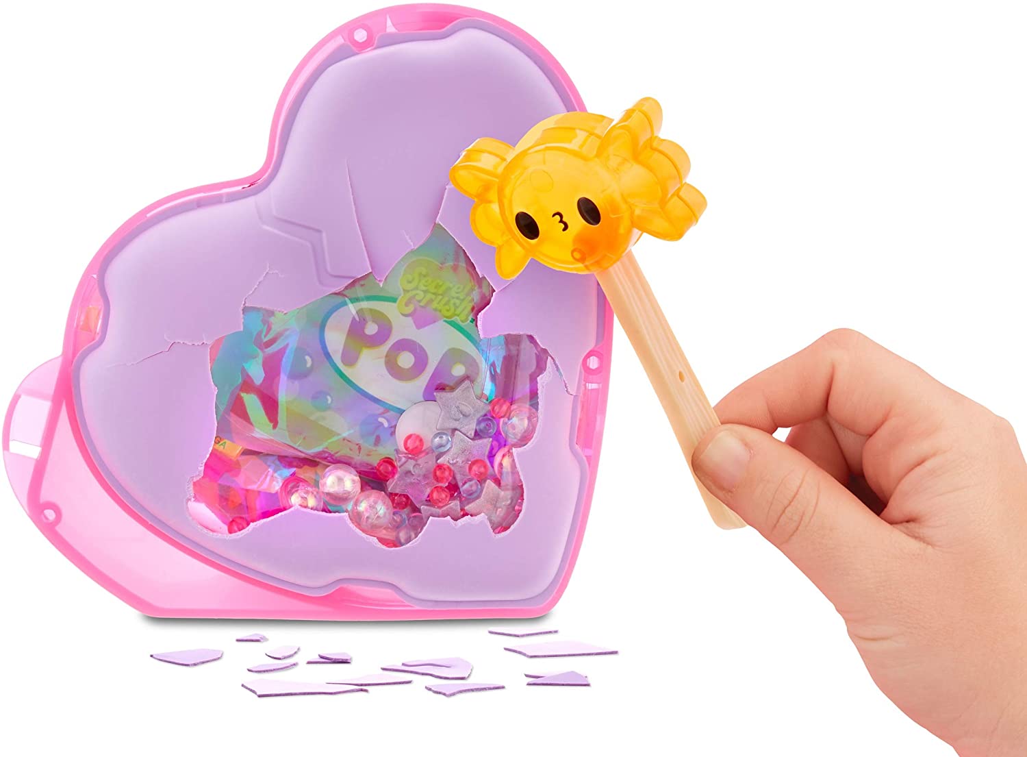 Crush to unbox the beautiful heart-shaped package with the included candy-themed hammer.