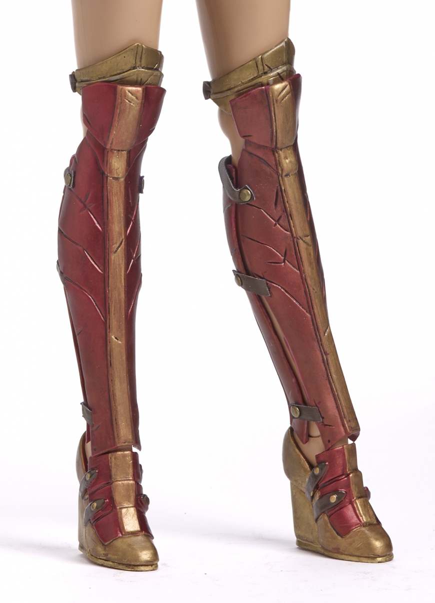 Tonner Doll Company in conjunction with DC is proud to introduce Wonder Woman! The warrior Princess from Themyscira takes form as a 16” character figure of expertly engineered injected plastic and vinyl. The totally new body has 15 points of articulation and Gal Gadot’s likeness is captured in exquisite detail. The finest saran is used to create lifelike hair set off with an accurate, highly detailed crown. Battle armor is a must for Wonder Woman and the extreme detail of this set is made for a Goddess. Accurately sculpted depicting her movie costume, the WW armor consists of a molded breast plate with a genuine leather battle skirt; her armband and gauntlets are made of real metal. Wonder Woman carries her golden lasso in a genuine leather harness. Boots are made of detailed vinyl and resin. Figure comes with changeable open hands, fists and gripping hands. Here are pictures of the new Wonder Woman doll: