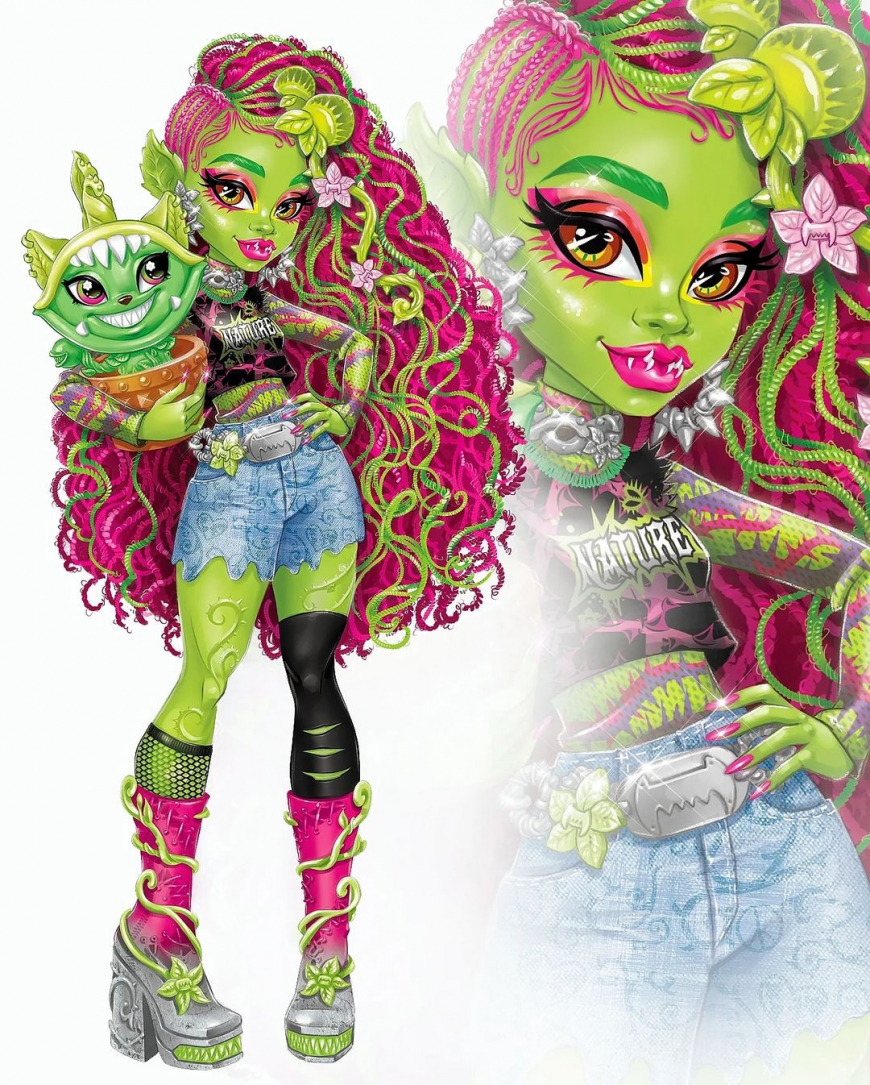 With her creepy-cute plant-cat Chewlian at her side, Venus McFlytrap is ready for countless creeperific adventures!