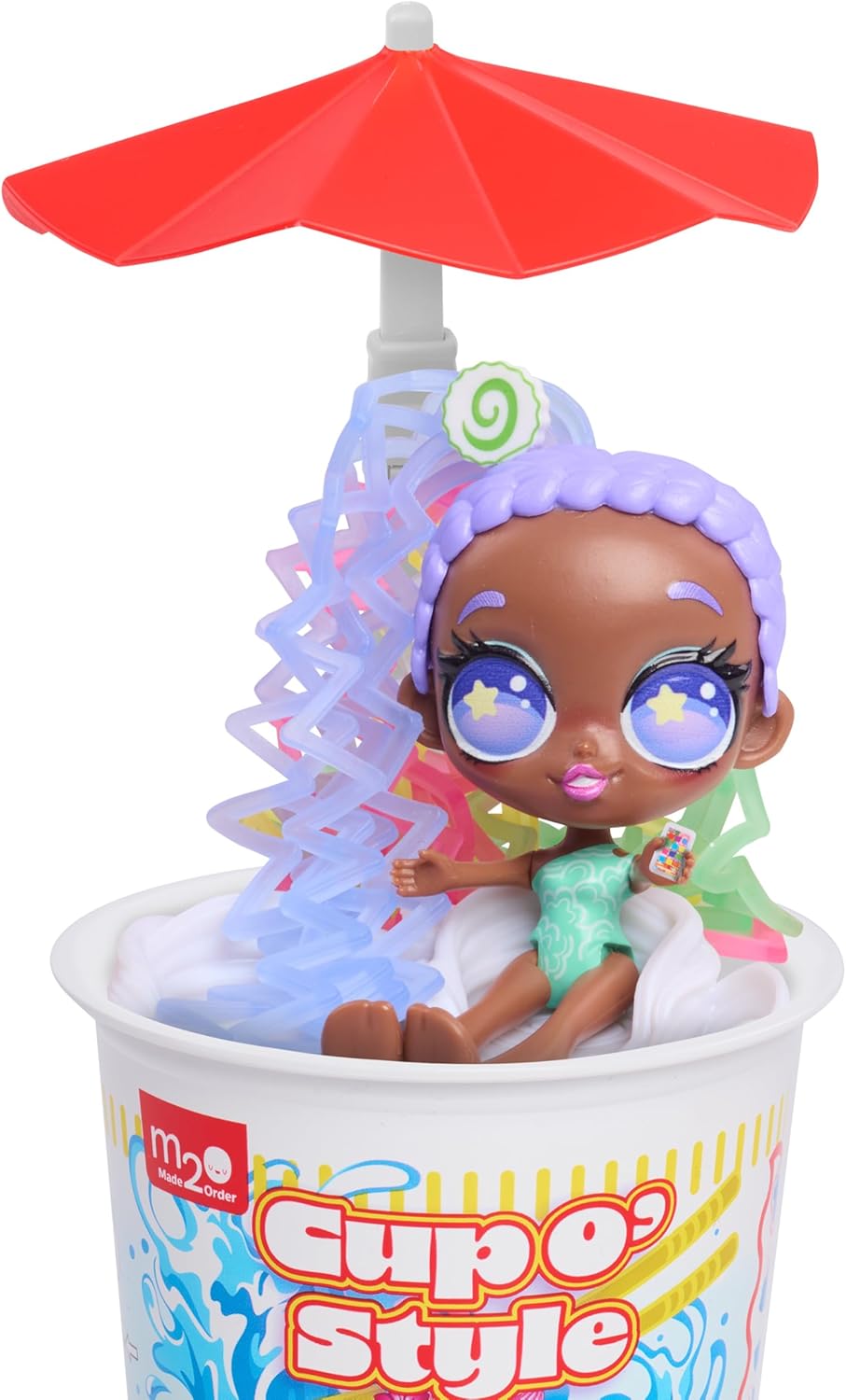 Instant Looks That Serve: Fashion makes a stylish rendezvous with ramen inside every Made 2 Order Cup O’ Style container. Within the blind-bag-style soup cup, find 1 of 6 possible collectible dolls, all stylishly inspired by favorite noodle flavors.