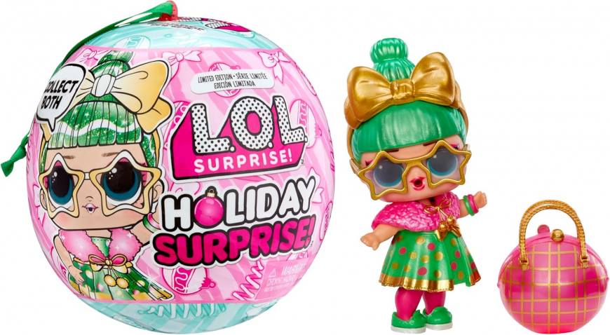 DISCOVER WHATS INSIDE: 8 SURPRISES: Includes: (1) 1 Limited edition L.O.L. Surprise! Holiday Present Surprise doll; (2) Outfit; (3) Shoes; (4) Purse; (5) Accessory; (6) Sticker; (7) Secret Message; (8) Ornament Ball