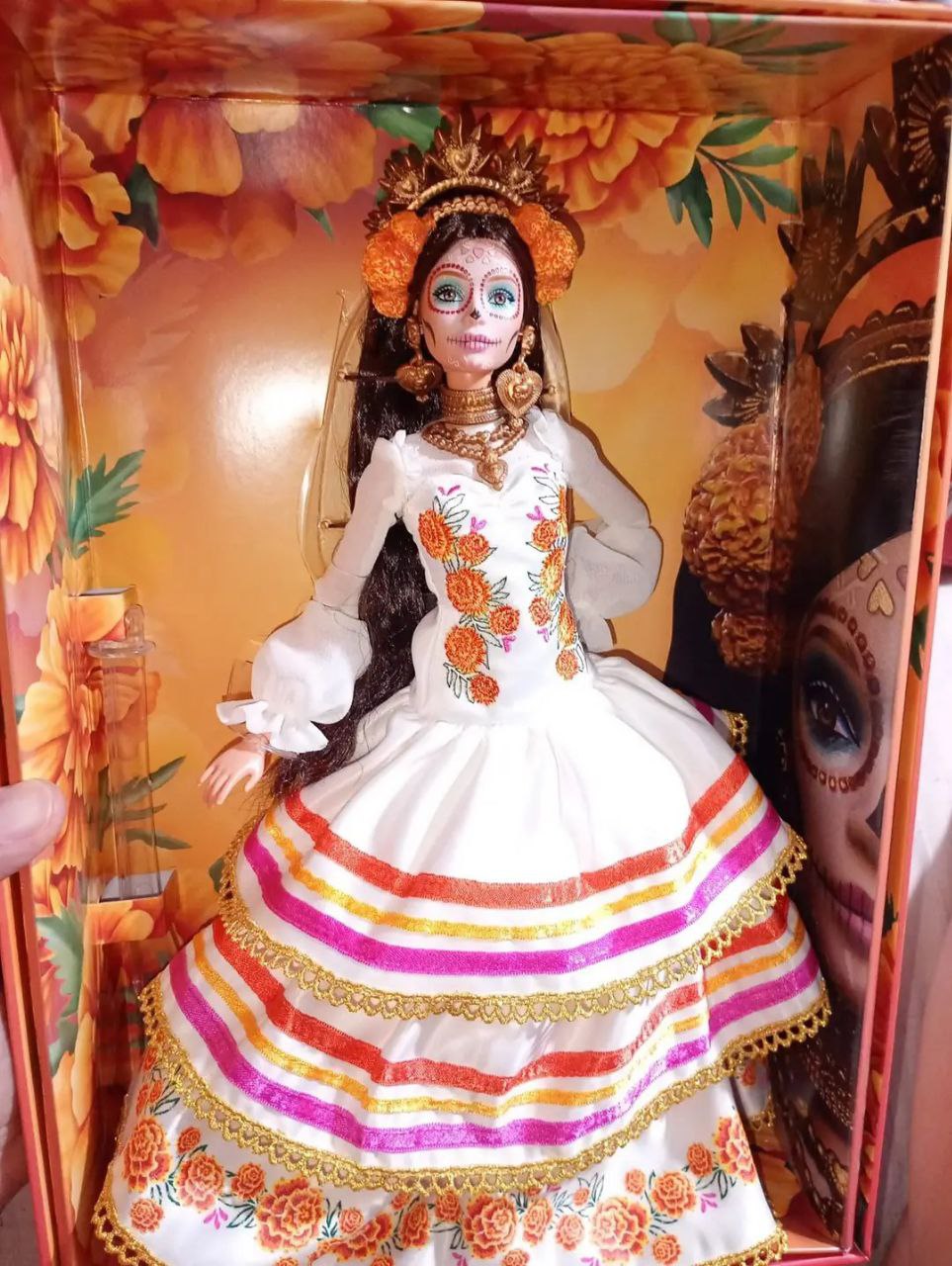 The 2025 Barbie Día De Muertos doll comes in vibrant marigold packaging that is perfect for display and gifting. May she bring joy to your household as you celebrate memories of loved ones!