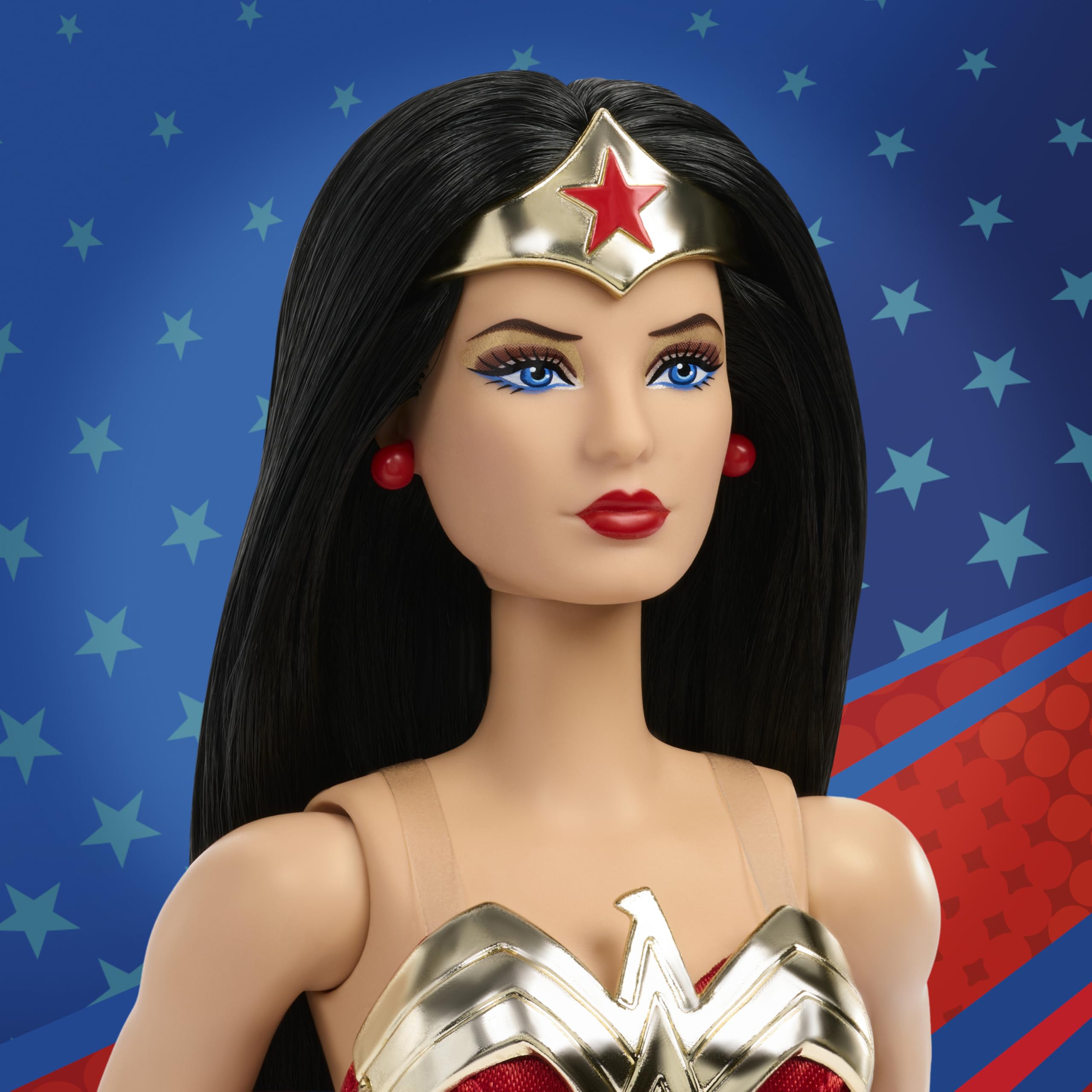 Enemies of justice, beware. Wonder Woman has arrived on the scene, with a Barbie doll tribute that celebrates Wonder Woman™ and her 85 years of heroism. Diana – Amazonian warrior, Princess of Themyscira, and iconic DC protagonist – is a vision of courage in this costume, inspired by one of her classic comic-book looks. Her signature bodysuit and red boots are accompanied by her tiara, Lasso of Truth, and bracelet cuffs. This DC Super Hero is serving ultra-powerful strength and fierce style.
