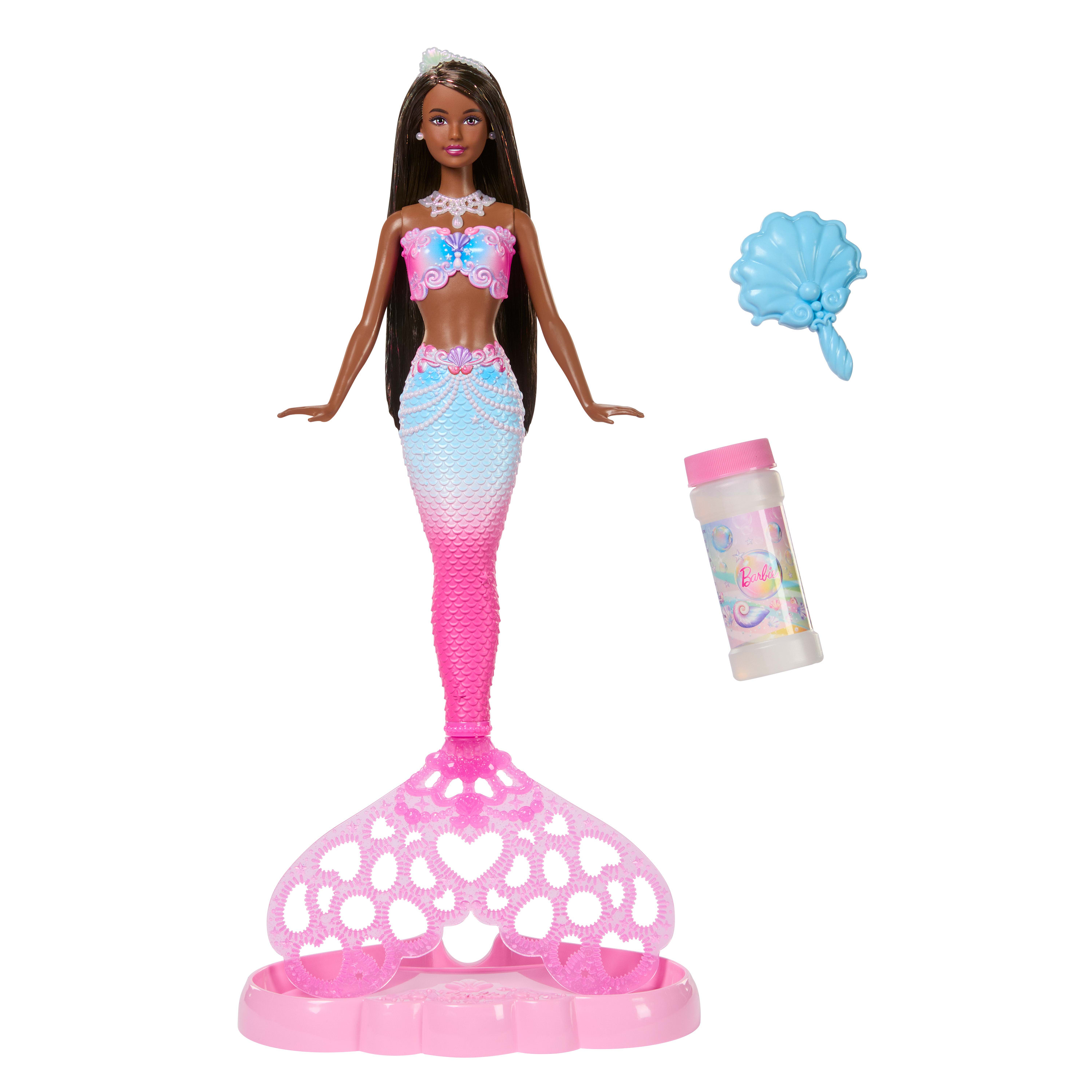 With so many opportunities for fantasy fun, Barbie Bubble Sparkle Mermaid doll makes a magical gift for kids ages 3 years old and up!