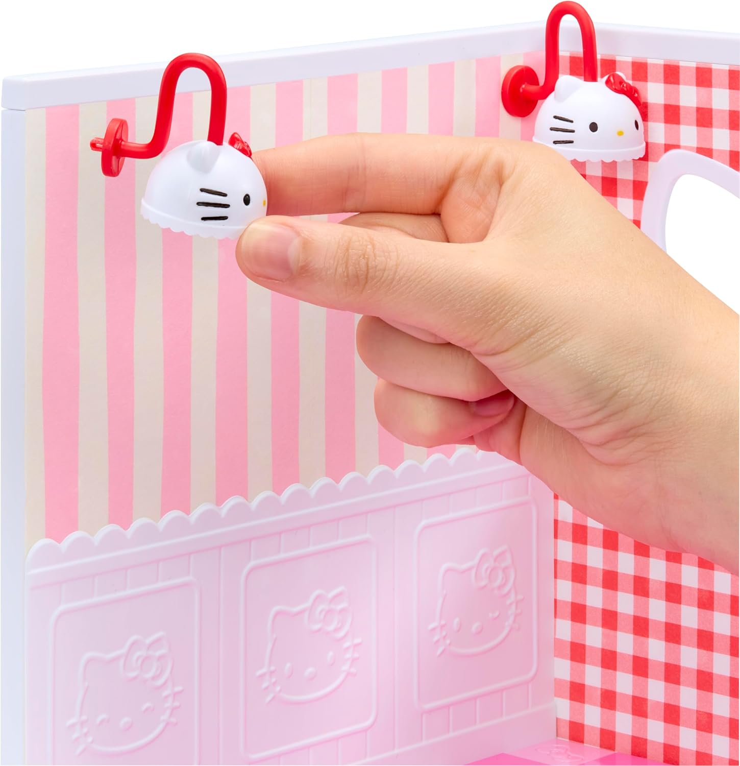 DECORATE: Decorate your space with the fun accessories and ingredients included! Each pack comes with an exclusive Hello Kitty themed furniture piece, ingredients to stock your shelves, and mini Hello Kitty stickers