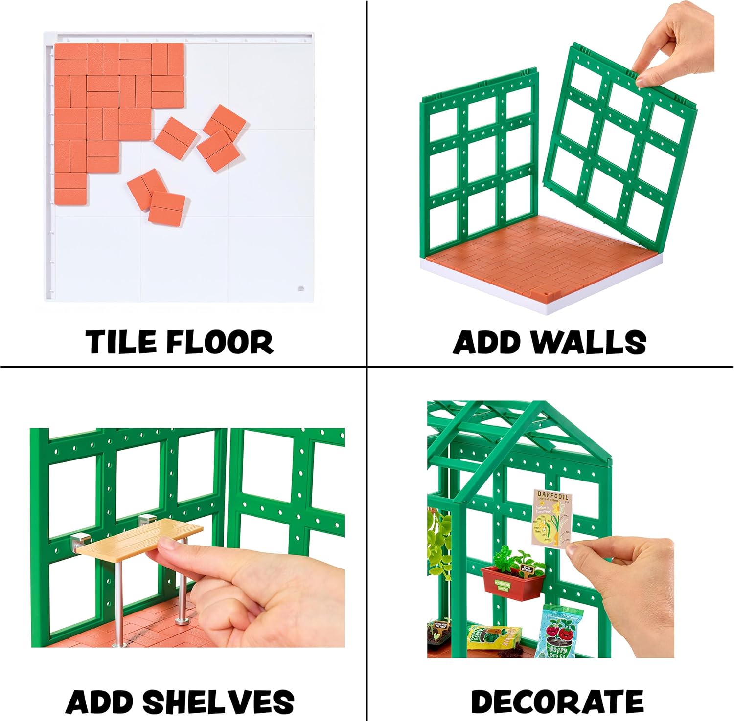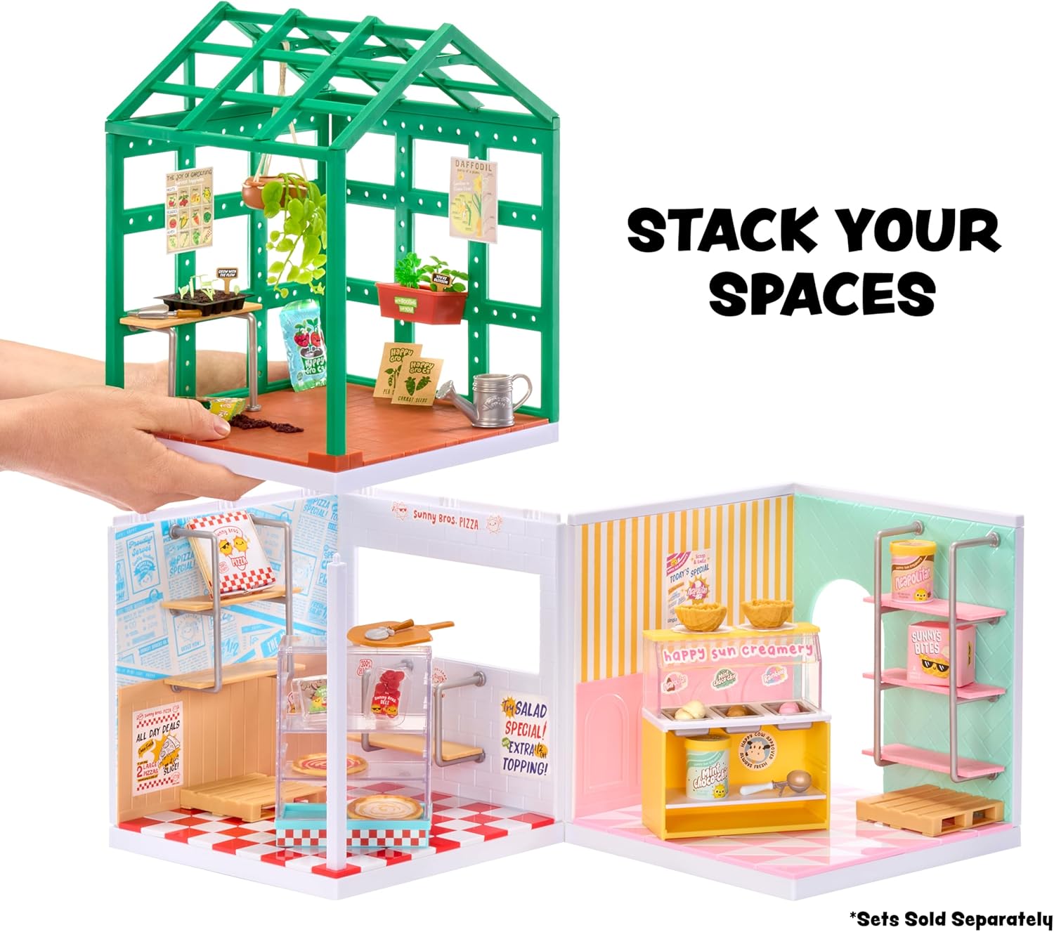Bring your Miniverse outdoors with Make It Mini Spaces Greenhouse. each Greenhouse pack includes all you need to craft your space – two wall panels, a tiled floor panel, roofing, a mini table, and a bundle of tiny plants & materials to decorate & style your scene. You can also see other upcoming MGA’s Miniverse Make It Mini new Spaces playsets coming soon on the stock images, including spa and pet shop.