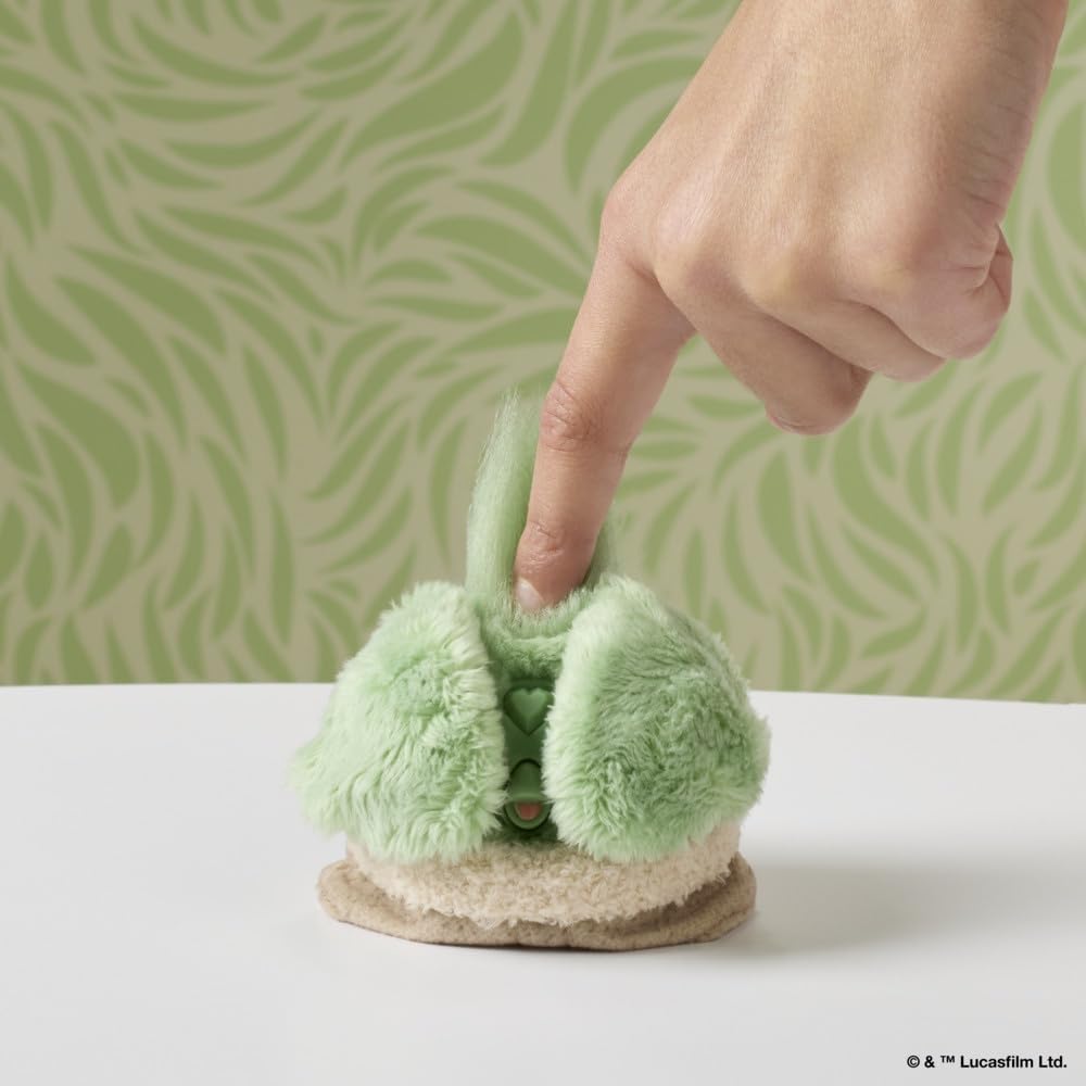Furblets love to dress up like the cutest bestie in the galaxy! This Furby Grogu toy has soft green fur, a small 3-inch scale, and over 45 sound effects. Explore the 3 buttons to hear Force sound effects, Grogu babble, and fun feeding noises. The detachable keychain clip makes it perfect for backpack decorations or purse keychain charms so that this cosmic little bestie can be your copilot anywhere you go! It's a perfect gift for Grogu fans of almost any age.