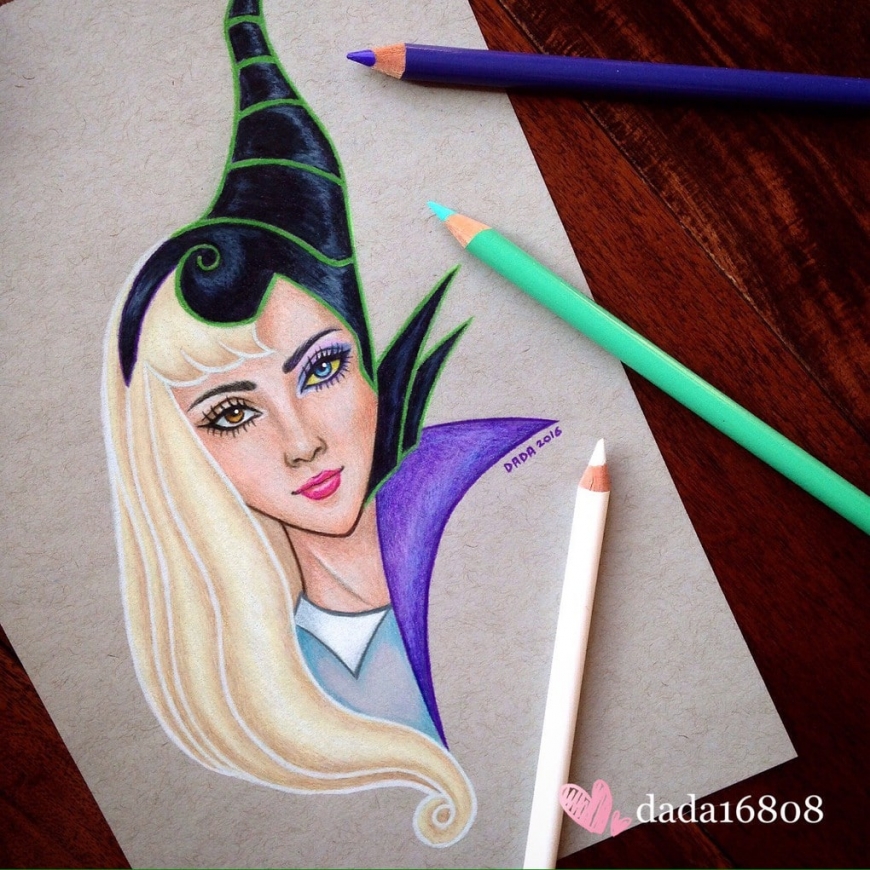 Artist combines faces of the characters in one pictureAurora and Maleficent