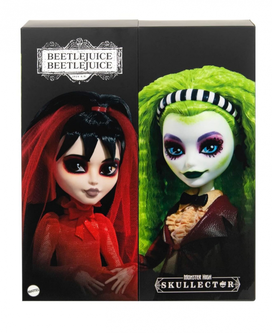 Beware, the Juice is loose! And he wants to get married (it's a contract thing). For better or worse, Betelgeuse and Lydia dolls are ready to walk down the aisle in this Monster High Skullector set.